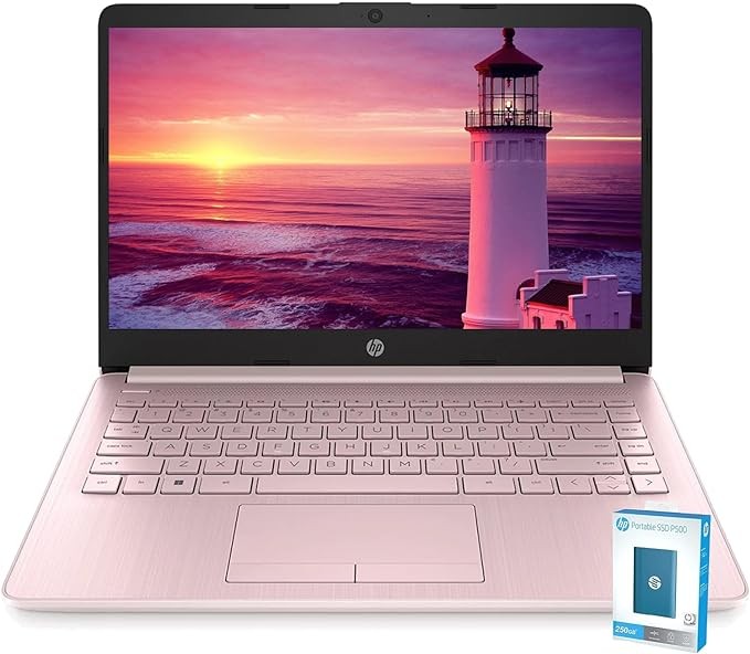 2022 HP Premium 14-inch HD Thin and Light Laptop, Intel Quad-Core Processor, 16GB RAM, 64GB Storage, Long Battery Life, Webcam, Bluetooth, HDMI, Wi-Fi, Rose Gold, Windows 11 + 1 Year Microsoft 365
