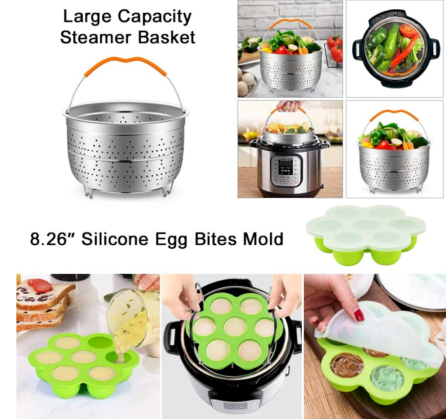 MLCINI 20Pcs Accessories for 6 quart 8 quart Instant Pot, Ninja Foodi 8quart. - This Kits is a complete set of accessories you will need to make the maximum out of your wonderful little kitchen appliance. You will no longer have to wonder around thinking what new dishes to cook using your 6qt 8qt instant pot/pressure cooker and how!