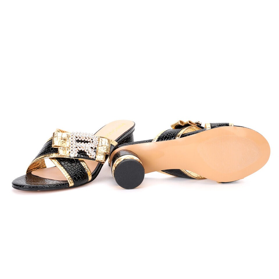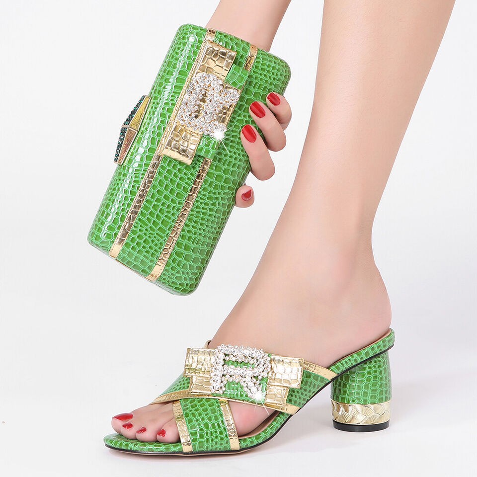 Women Sandals Luxury Matching Shoes And Bag Mid 6.5CM Italian Fashion Rhinestone