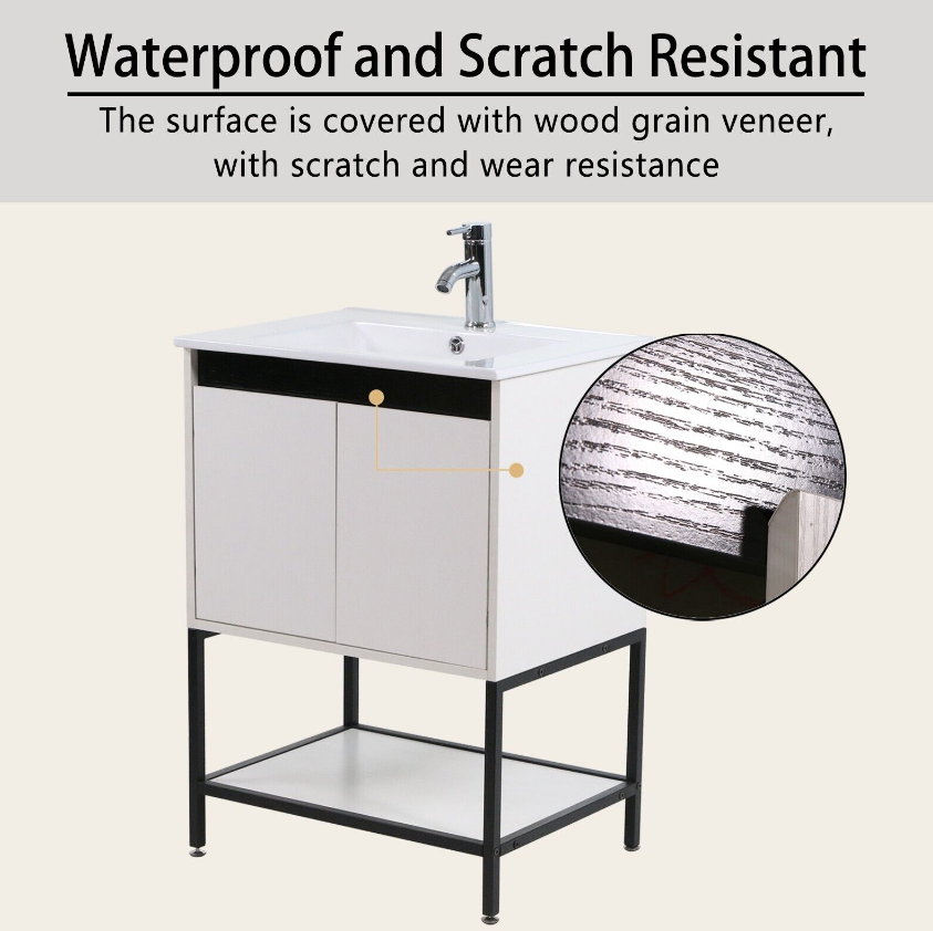 【Durable and Sturdy Structure】:Our bathroom vanities have constructed high-quality P2 grade PB board. The metal frame makes the bathroom furniture base more concise, and the surface is easy to clean and easy to take care of it.