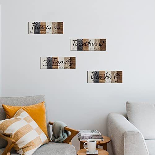 4 Pcs Home Wall Decor Signs This is Us Wall Art Bless This Home Family Sign F...