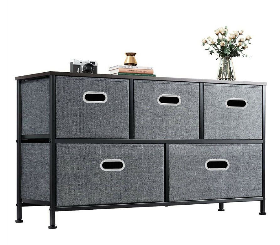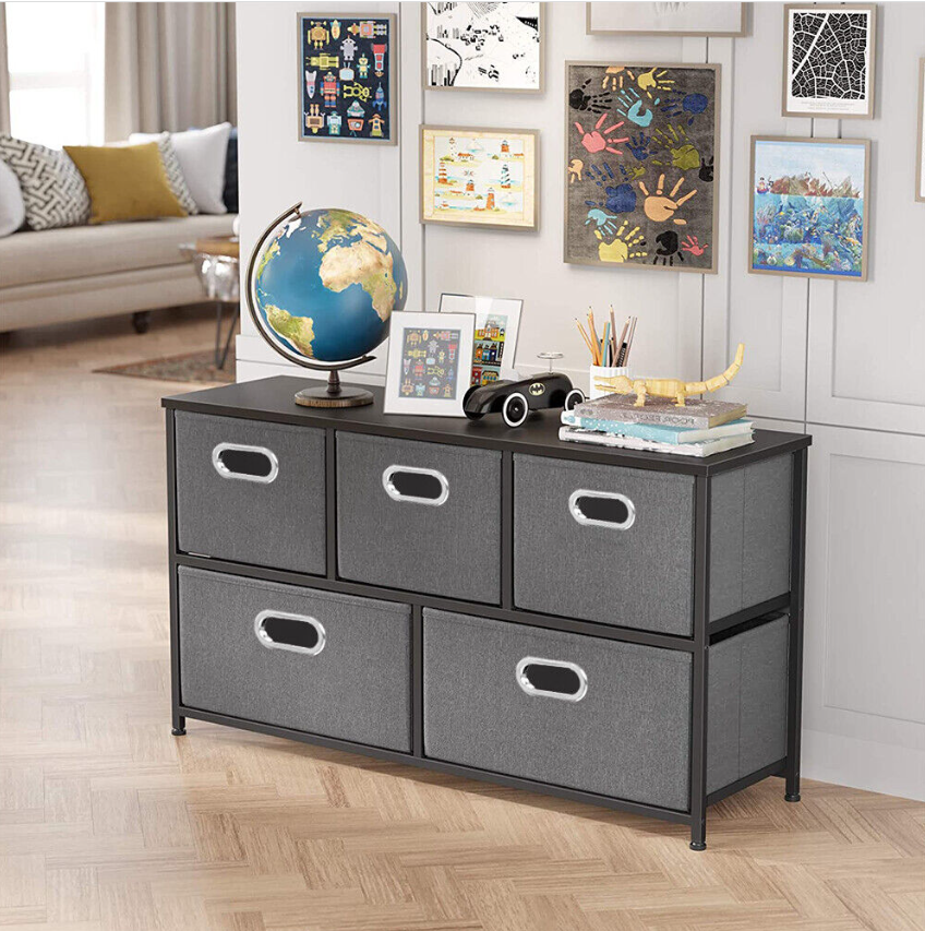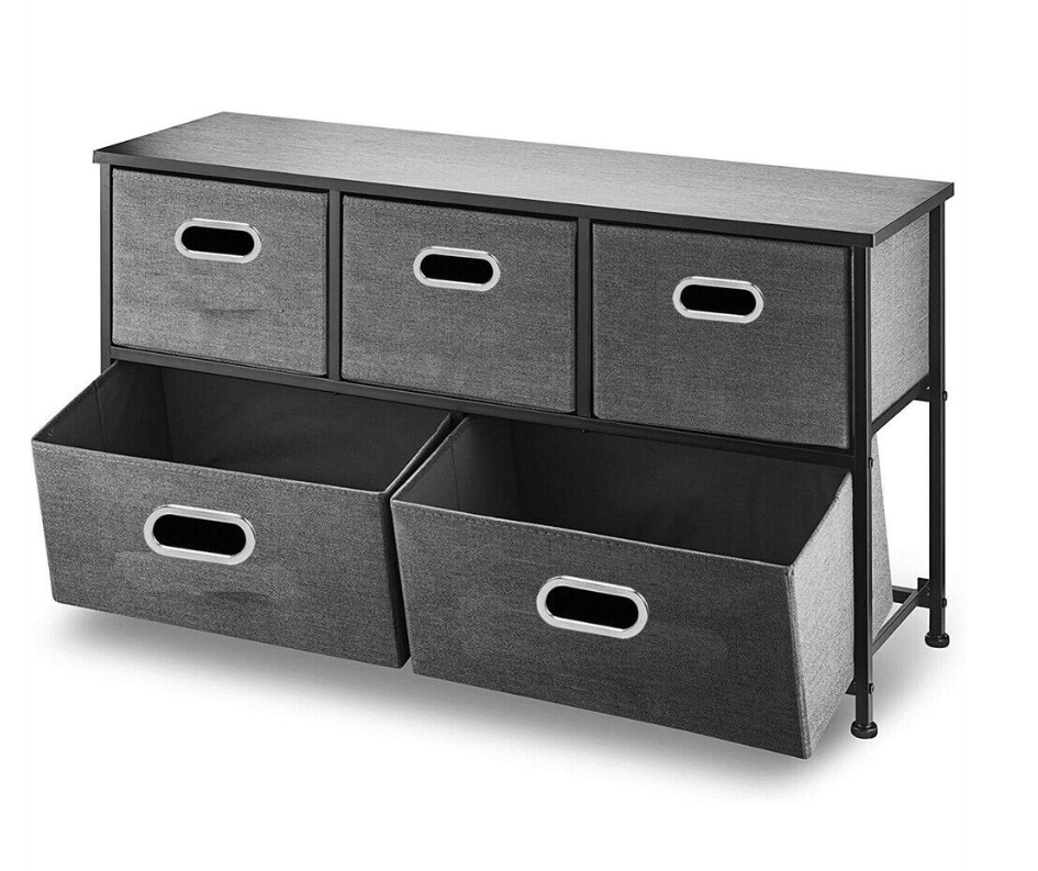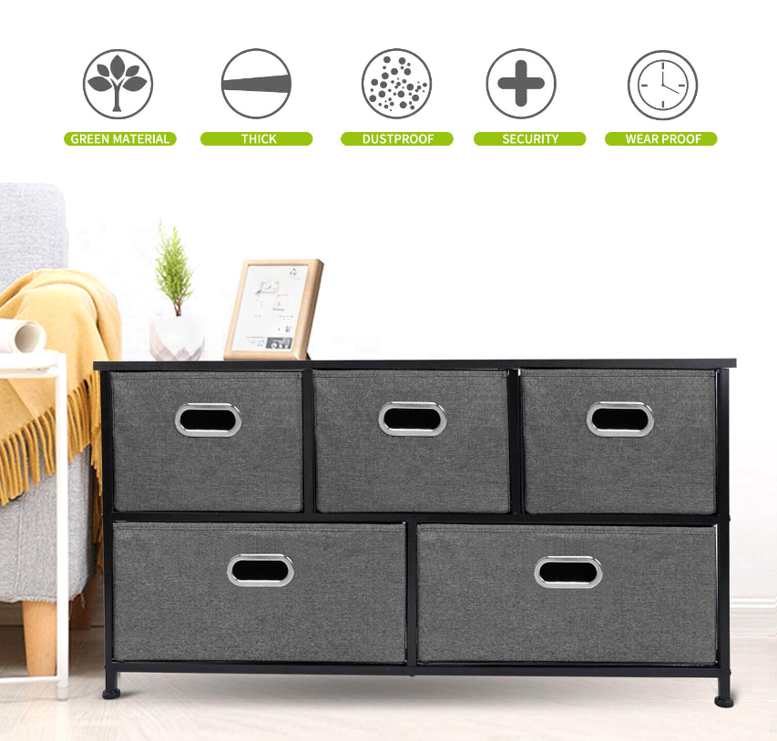 5 Fabric Drawers Storage Cube Bins Dresser Organizer Cabinet Bedroom Living Room
