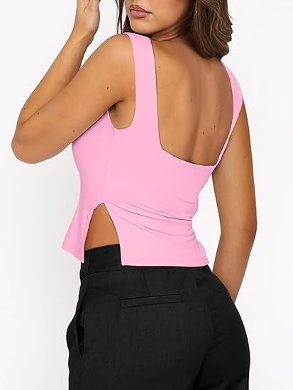 ANRABESS Womens Crop Tank Tops Sexy Sleeveless Sweetheart Neck Backless Side Split Going Out Trendy Y2K Summer Outfits