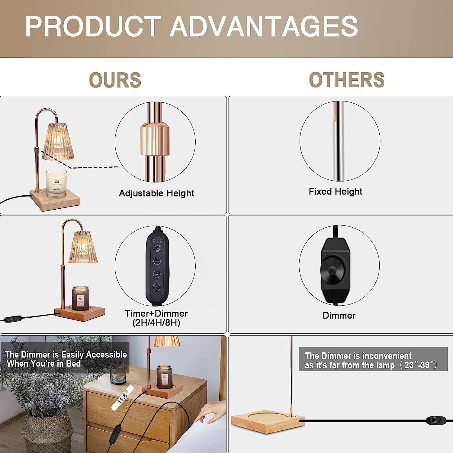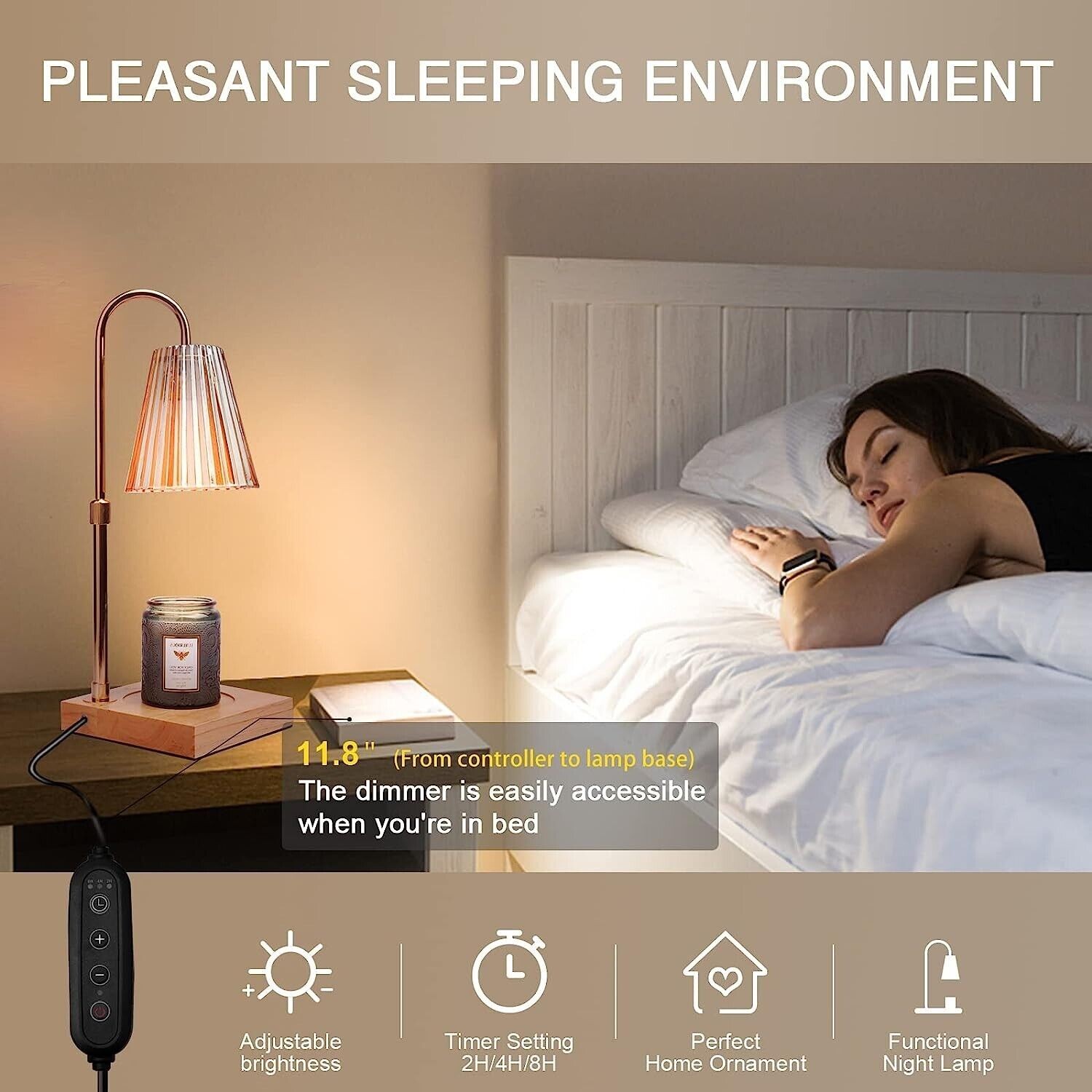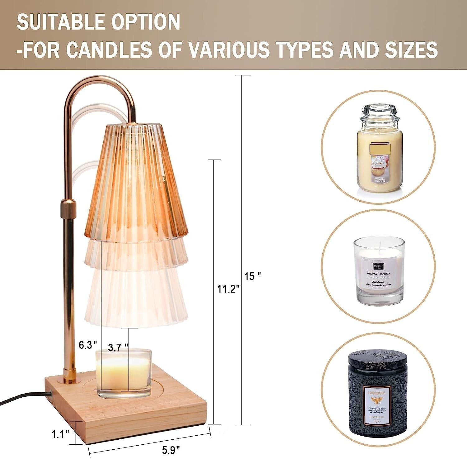 Candle Warmer Lamp with Timer(2H/4H/8H),Adjustable Height&Brightness Candle Lamp