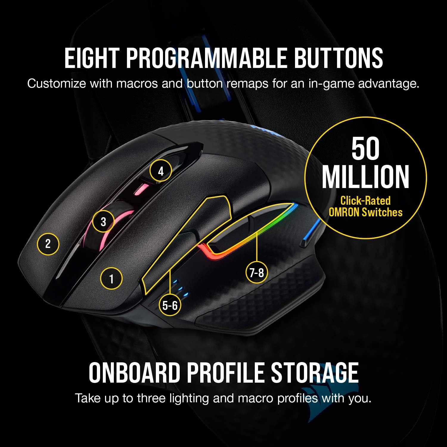 Corsair Dark Core RGB Pro SE, FPS/MOBA Gaming Mouse with SLIPSTREAM Technology, Black, Backlit RGB LED, 18000 DPI, Optical, Qi wireless charging certified