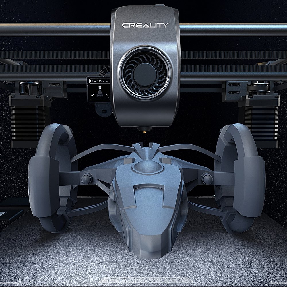 K1 Max reaches 600mm/s* in only 0.03s based on 20000mm/s² acceleration. It can be as productive as several 3D printers together. K1 Max: 600mm/s Regular 3D Printer: 50mm/s * The 600mm/s speed is achieved at Creality Lab in the Surface Mode with 0.1mm layer height. * The typical speed is 300mm/s. The travel speed is 800mm/s.
