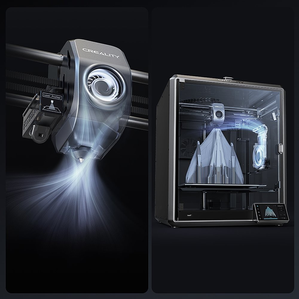 • OUT-of-THE-BOX - K1 Max is assembled and calibrated before shipment, and it offers a boot-up quick guide and allows self-test with one tap. So, users can print right out of the box. The Creality K1 Max offers hands-free auto leveling, the strain sensors in the heatbed deliver hands-free leveling, while the AI LiDAR scans the bed tilts at a million points for more precise leveling. Its heatbed heats to 60℃ in just the 90s. Ensuring perfect prints every time without the hassle.