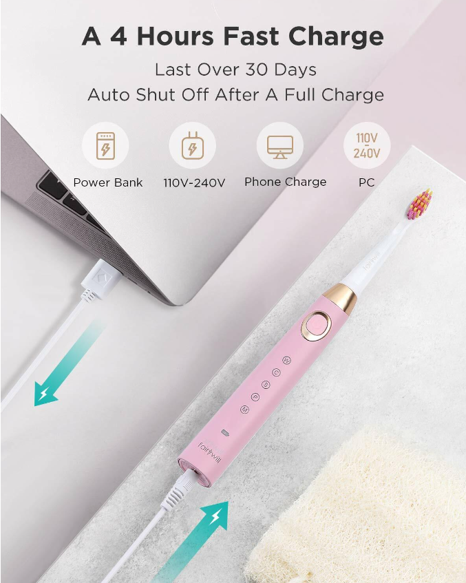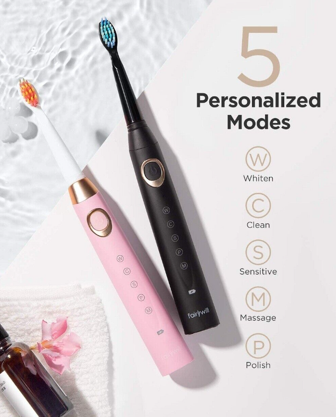 Auto Shut-Off, Charging Indicator, Ergonomic Design, Fast Charge, Firm Bristles, Interdental Brush Included, Multiple Cleaning Modes, Rechargeable, Replacement Heads Included, Soft Bristles, Timer, USB Charger, Fast Usb Charging, Waterproof, 2 Min Smart Timer