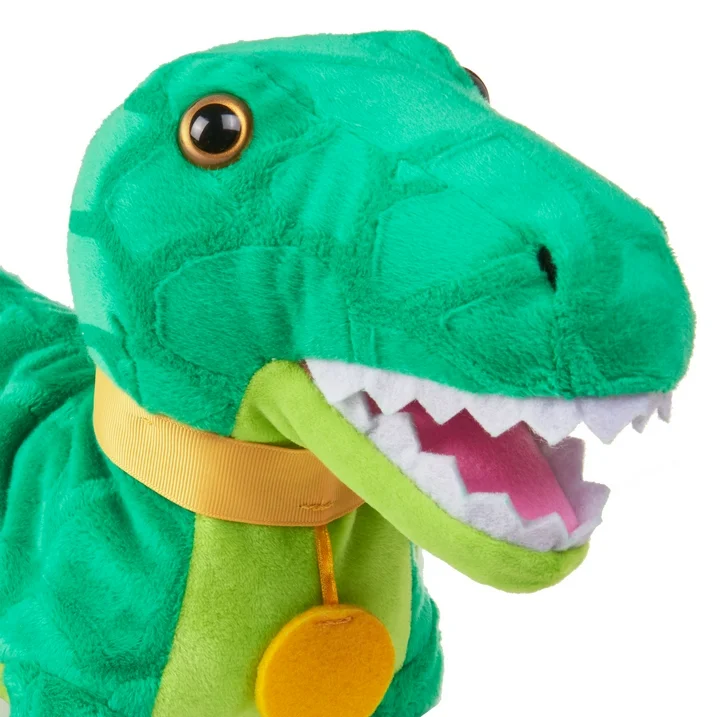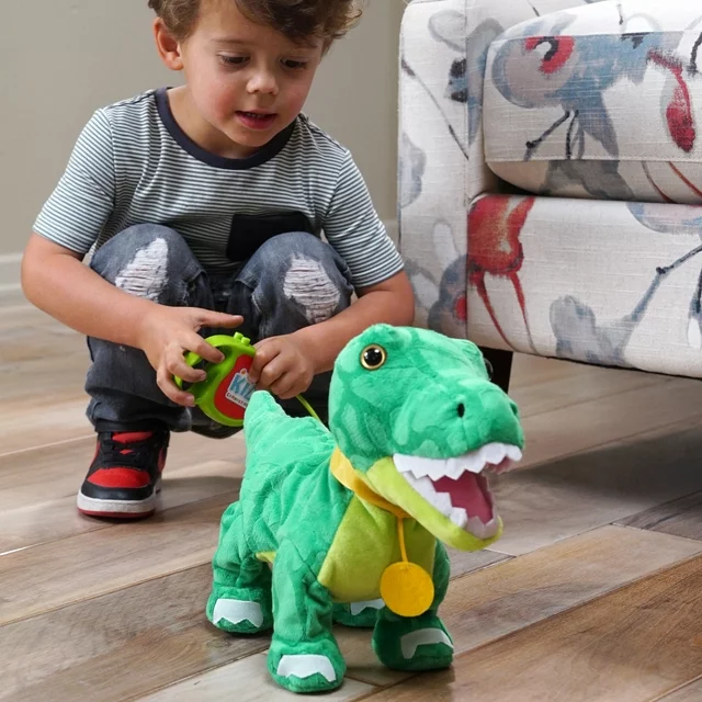 • Walking battery-operated pet puppy dinosaur with remote-controlled leash