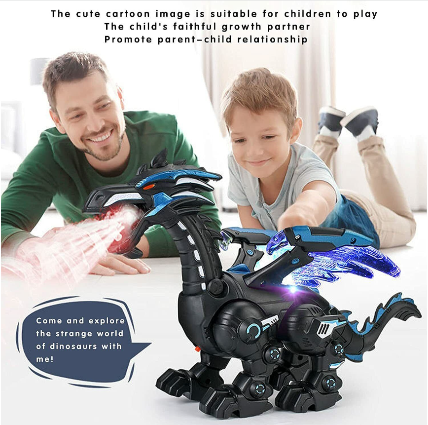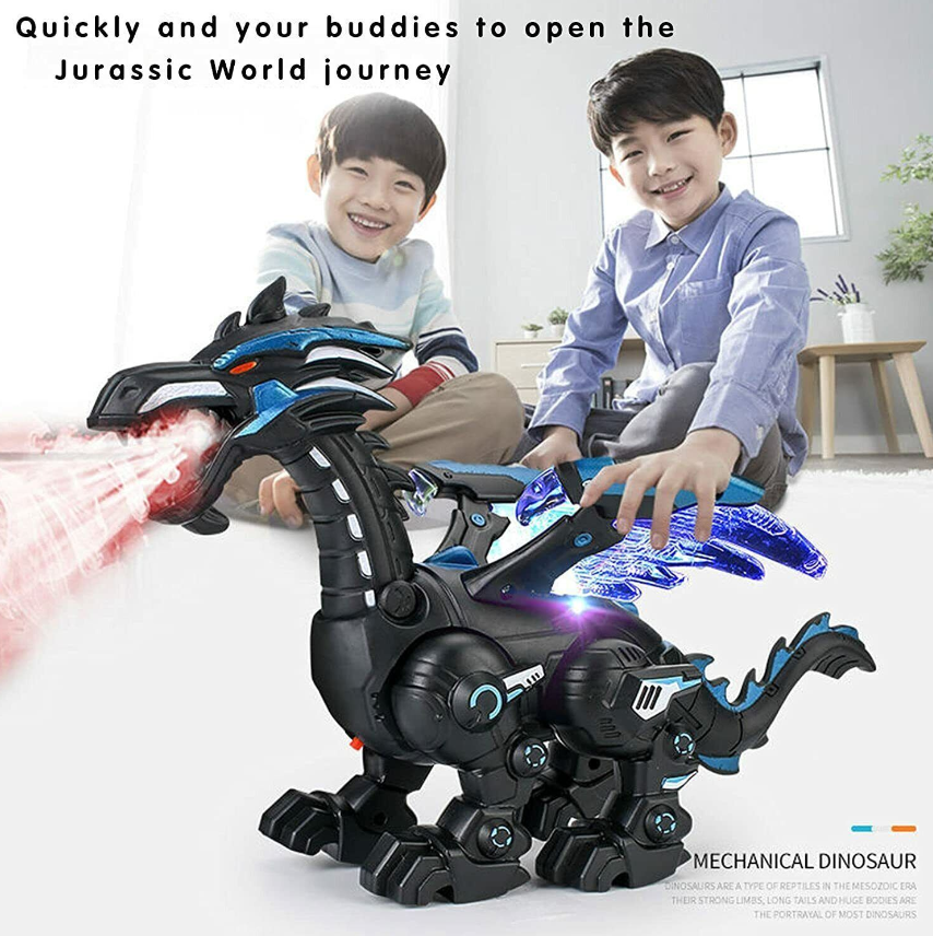 【Interactive Dinosaur Toy】: Growls Walking dinosaur has Technology Machinery Dinosaur appearance. Dinosaur has stunning, dazzling lights that illuminates. It could move, flame spraying, realistic roaring Suitable for family entertainment, but also the children's loyal growth partner.