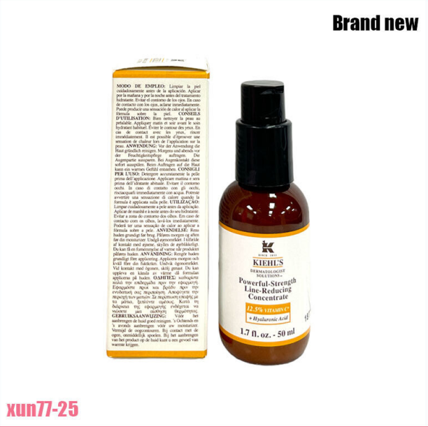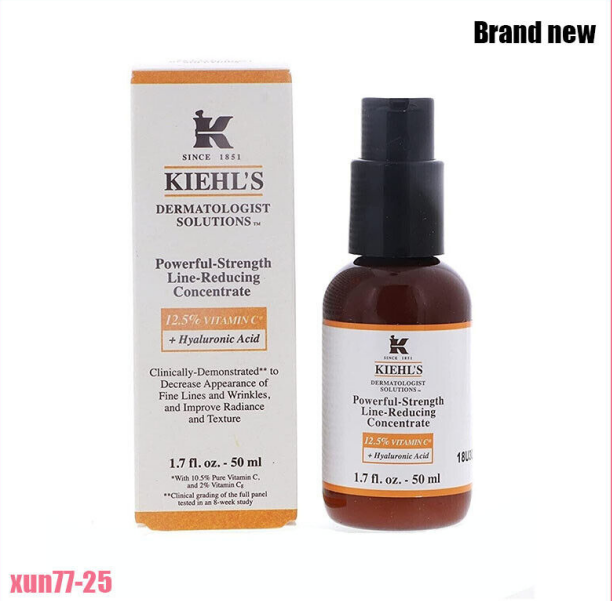 Kiehl's Dermatologist Solutions Powerful-Strength Line-Reducing Concentrate with 12.5% Vitamin C + Hyaluronic Acid. Clinically demonstrated to decrease appearance of fine lines and wrinkles and improve radiance and texture. A scientific achievement by Kiehl's chemists, this advanced powerful-strength line-reducing concentrate is powered with 10.5% pure Vitamin C, 2% Vitamin Cg & Hyaluronic Acid. The concentrate warms as it activates the skin. Immediately, skin feels smoother and more radiant, and fine lines and wrinkles are reduced over time. Dermatologist-Tested for Safety.