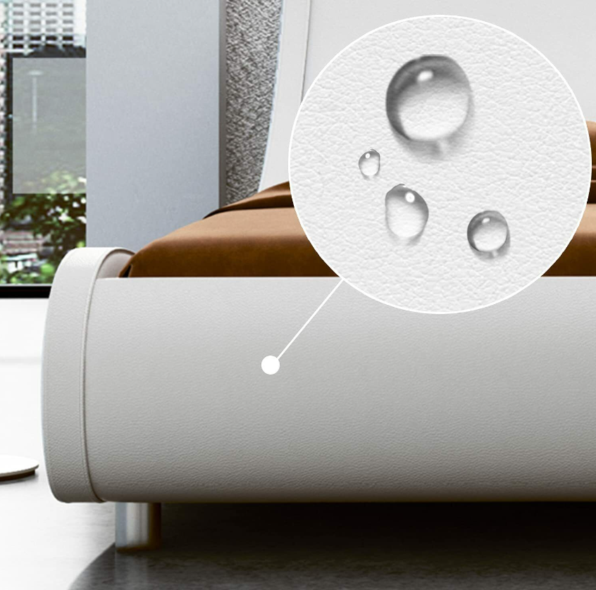 【Bedroom Refresh】 Wave-like silhouette of Our low profile bed is one of a kind addition to any contemporary bedroom. This upholstered platform bed is fully wrapped in soft PU leather for ultimate comfort and looks, and features a slatted base.