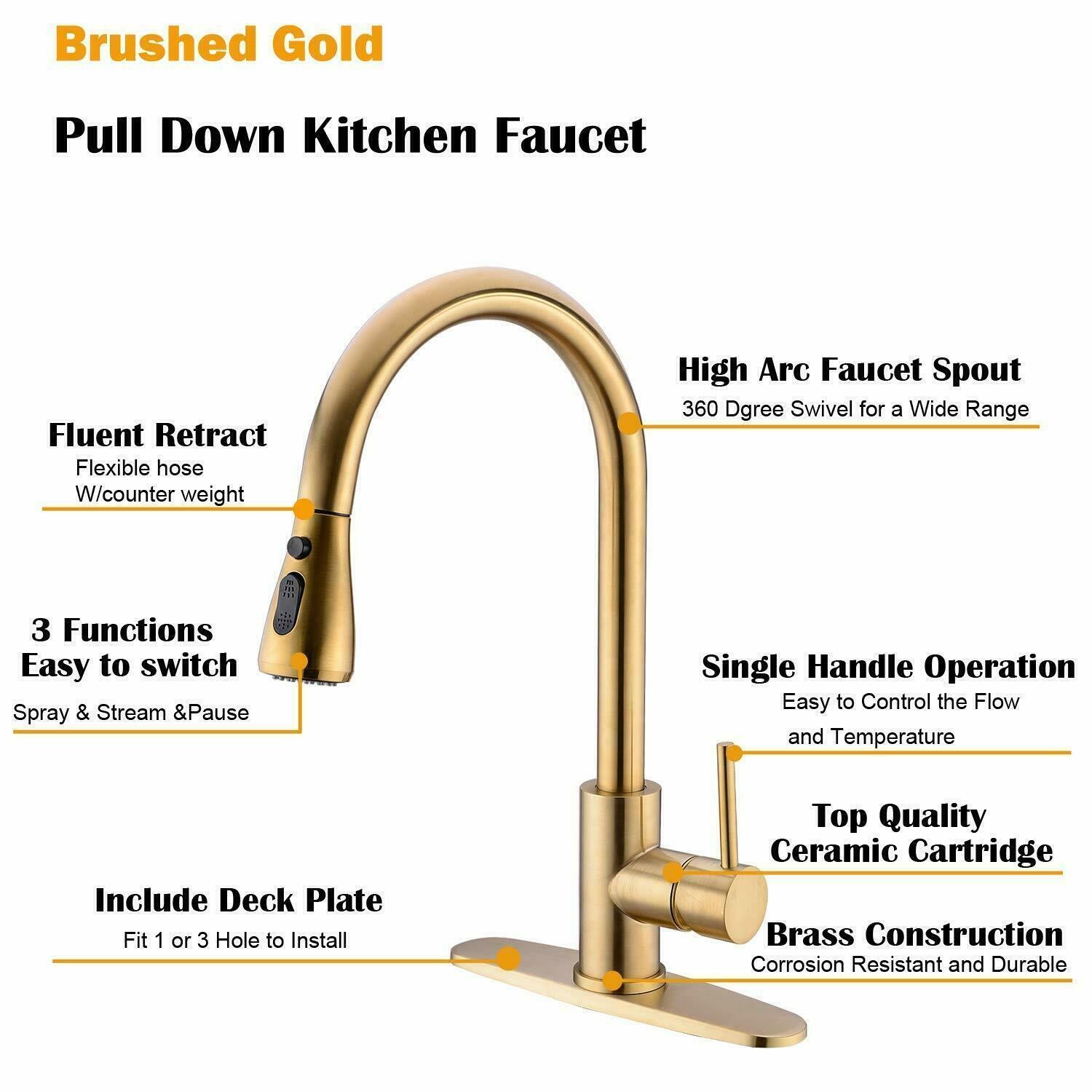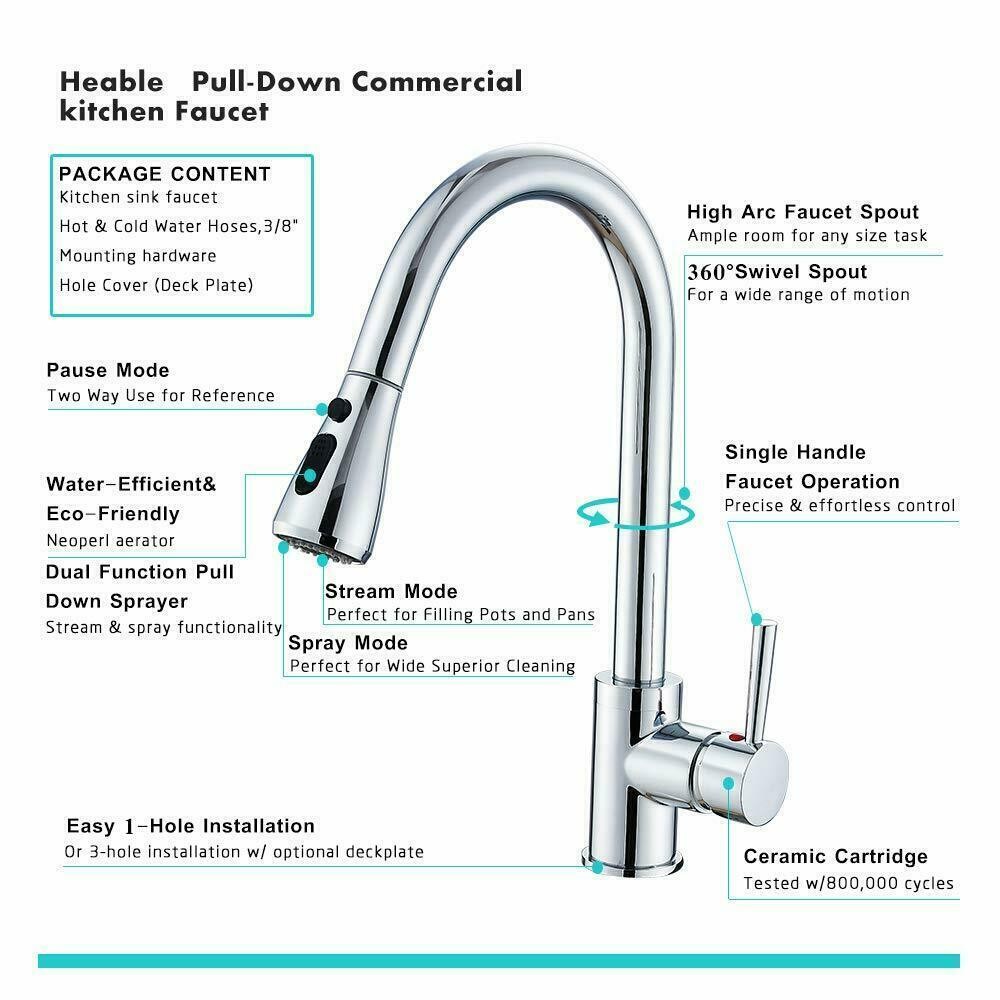 Kitchen Sink Faucet Pull Down Single Handle Swivel Sprayer Mixer Tap W/Plate