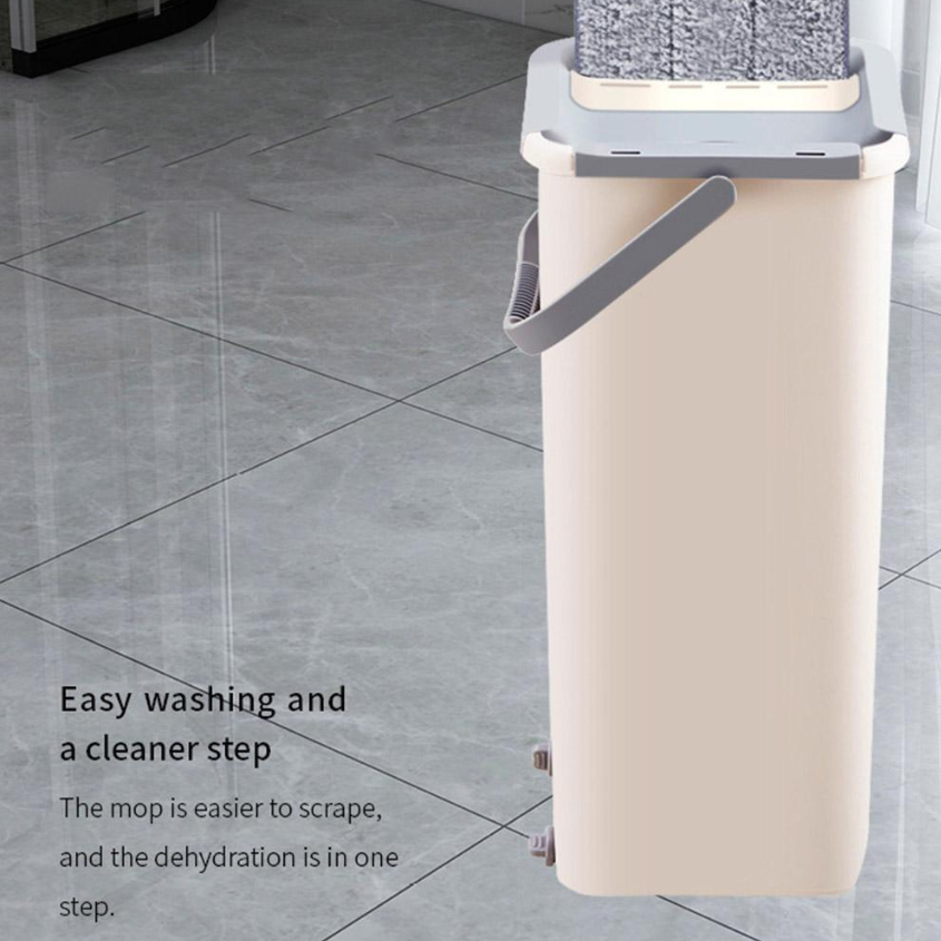 3.Hygienic and mess-free: The built-in bucket features a self-wringing mechanism that allows you to squeeze out excess water from the mop head without getting your hands wet or dirty. This helps to prevent the spread of germs and