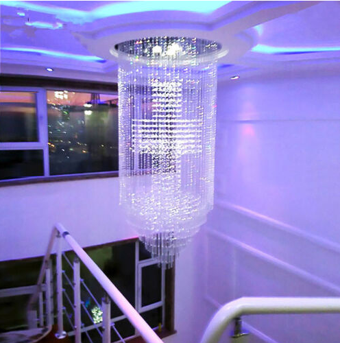 LED Crystal chandelier villa living room stair pendant lamp hotel lobby lighting