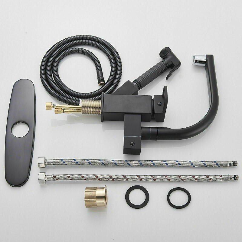 LED Kitchen Sink Faucet Matte Black Single Handle Pull Down Sprayer with Cover