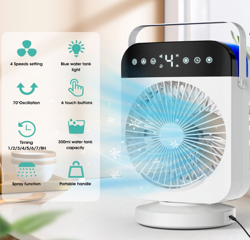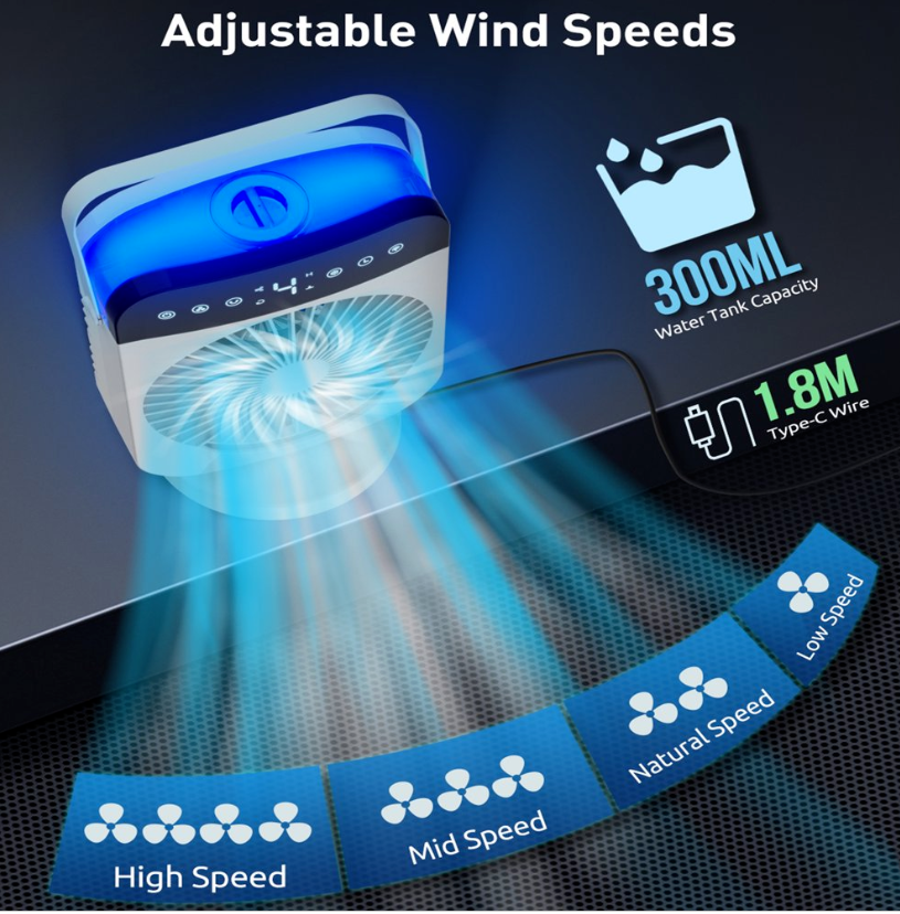 ❄Mini portable air conditioner can save your money and blows cooling wind, keeps your skin moisture and enjoy fresh air, which is very easy and portable to carry & move. It can be multifunctional as a combination of a mini air conditioner, desk fan, misting fan, night light, and humidifier.