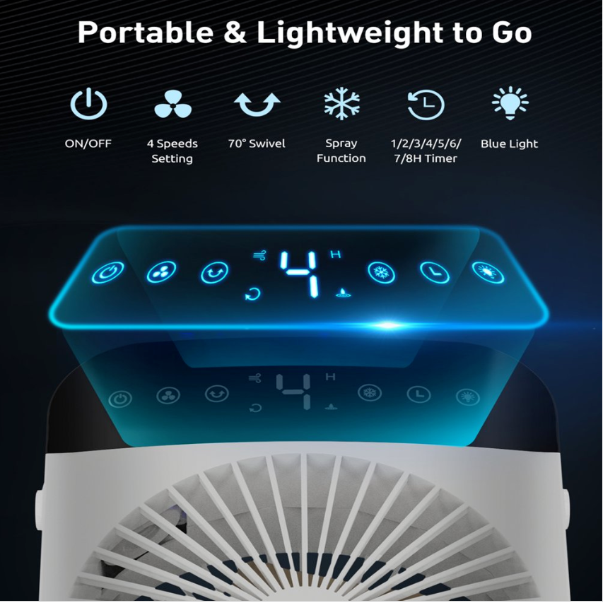 • ❄【Auto Timer & Safety Upgrade】Our mini air conditioner fan adds 1, 2, 4 or 8 hours automatic shut-off function to prevent colds and extra energy costs. More comprehensive safety functions, automatic suspension of work in case of water shortage; Under no operation for 24 hours, it will automatically shut down to better protect the equipment.