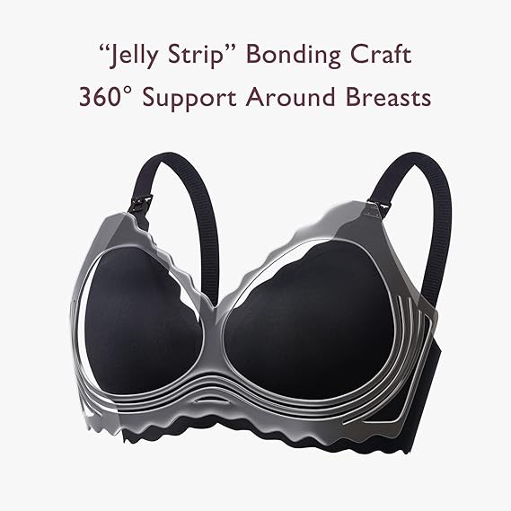 • Jelly Strip & 360° Support - Our nursing bra ripples up your breasts layer by layer with “Jelly Strip” gently to lift your breasts and keep them with 360°round support to an appropriate place evenly and naturally without pulling or breaking breast texture.