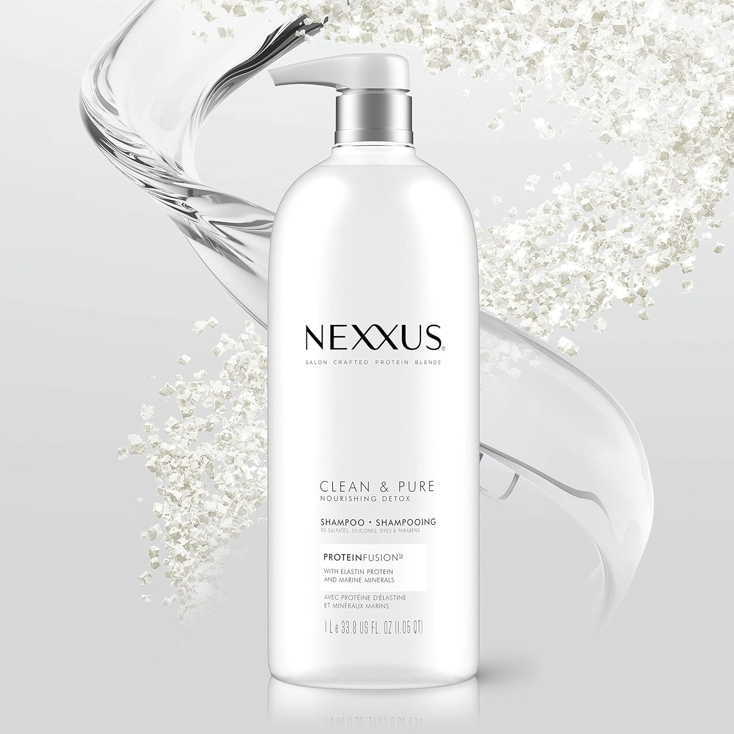 Main BenefitNexxus Clean and Pure Nourishing Detox Shampoo cleanses and detoxifies hair while replenishing vital nutrients.Detoxify, purify, and rebalanced your scalp and hair by removing impurities, including product and oil build-up.Nexxus Clean and Pure Nourishing Detox 5-in-1 Invisible Hair Oil provides five benefits in one: nourishment, frizz protection, smoothness, shine and color protection.