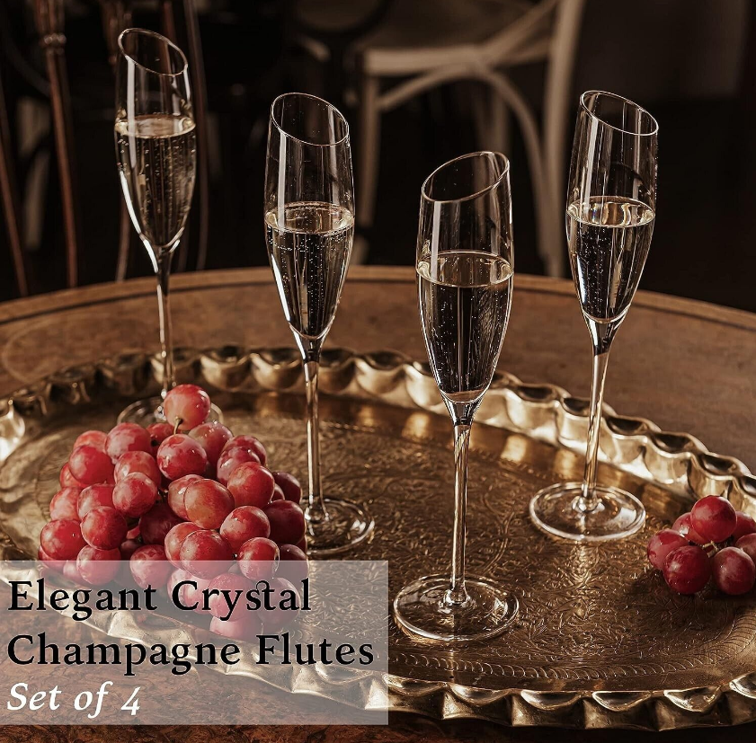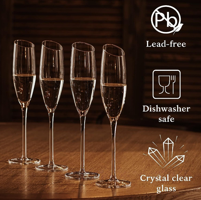 Set of 4 Champagne Flutes Modern Crystal Mimosa Glasses 6 Oz for Sparkling Wine
