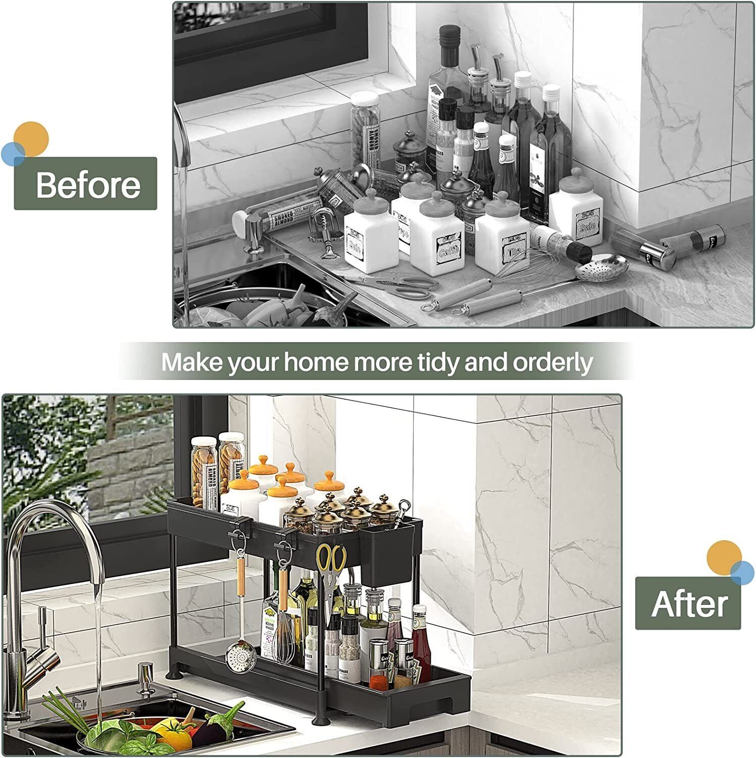 SPACELEAD Under Sink Organizers and Storage, Under Sliding Cabinet Basket Organi