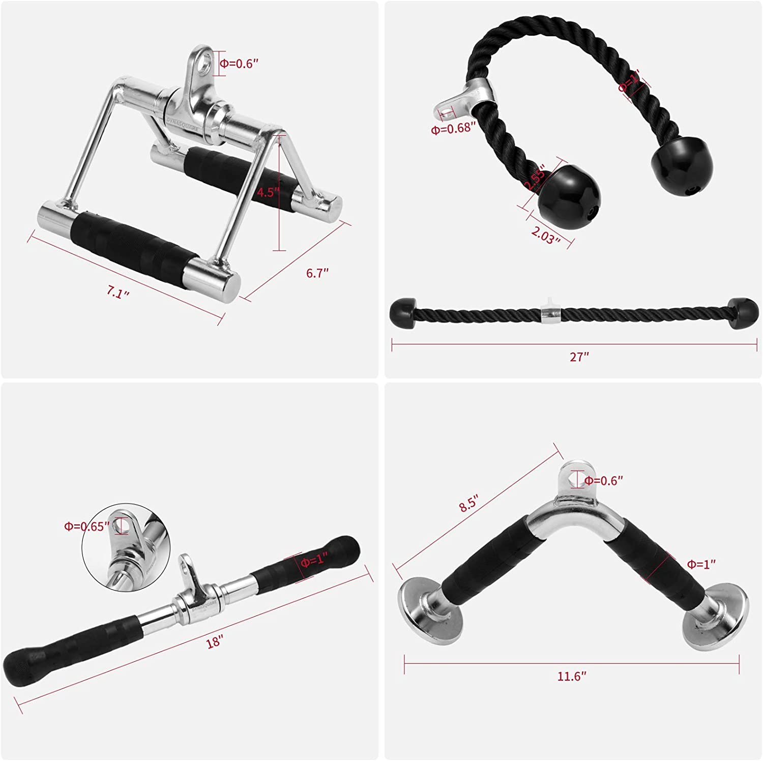 V Handle + Double D Handle + Tricep Rope + Rotating Bar