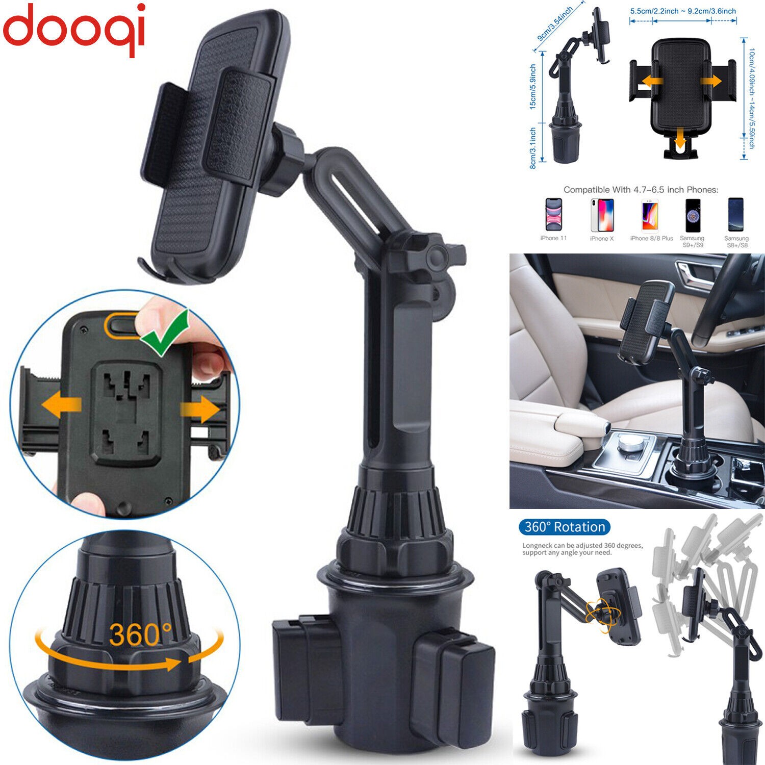 Universal 360° Degree Car Cup Mount Adjustable Holder For iPhone Cell Phone