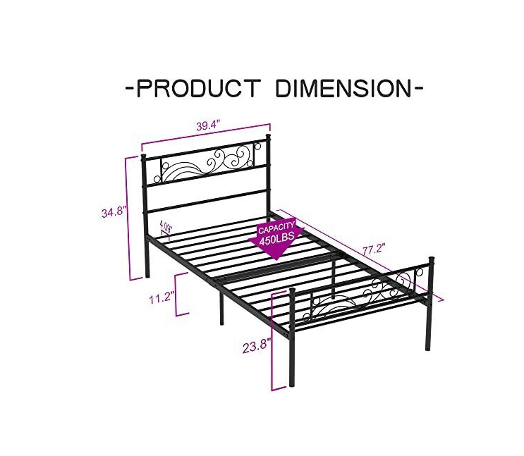 Metal Twin Bed Dimension: 77.55" x 39.17" x 34.84".