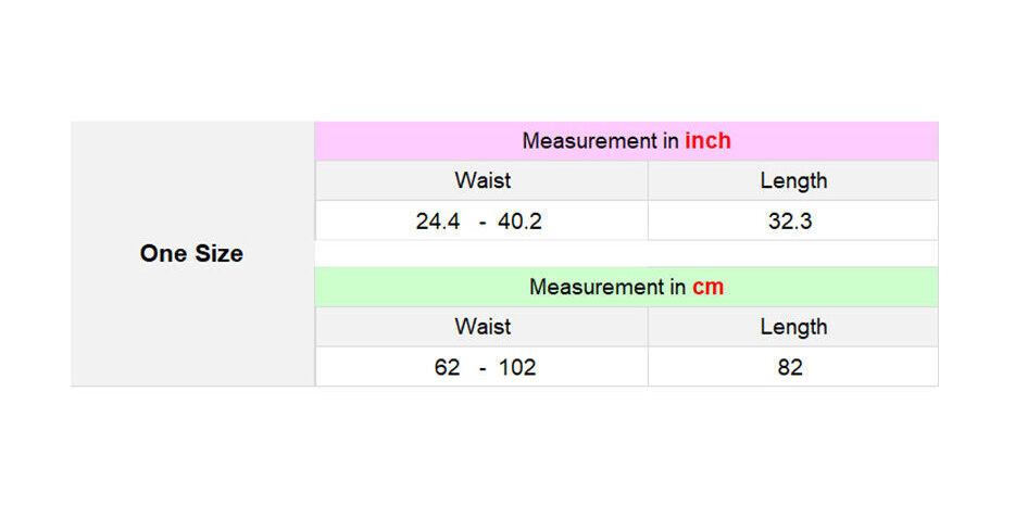 Free Size: Length 82cm, Waist 62-102cm, Lining 45cm